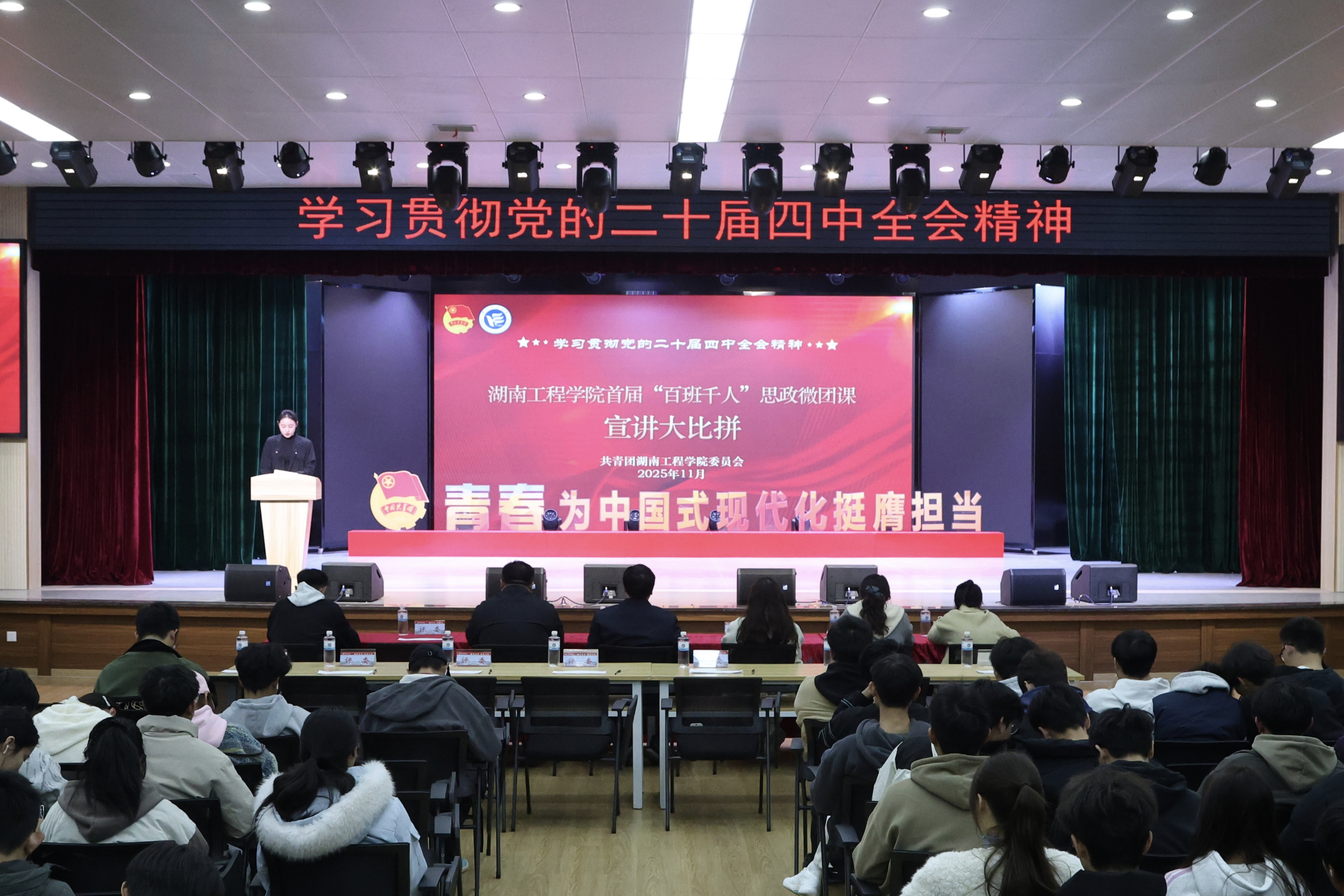 11月25日,我校在学生活动中心举办首届“百班千人”思政微团课宣讲大比拼活动,深入学习贯彻党的二十届四中全会精神。通过青年学生的生动宣讲,将党的创新理论与个人实践紧密结合,为全校师生呈现了一系列精彩的微团课内容。
